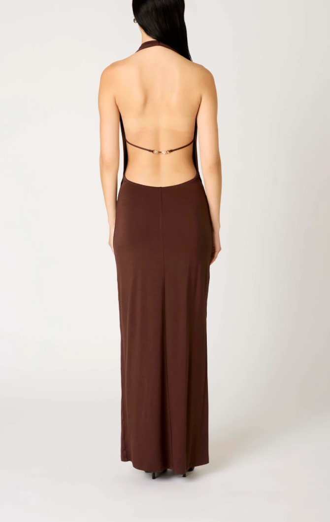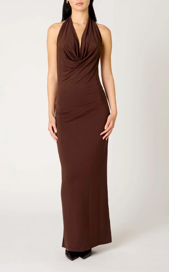Effortlessly Elegant – A halter neckline meets a draped cowl front for a fluid, sophisticated look.